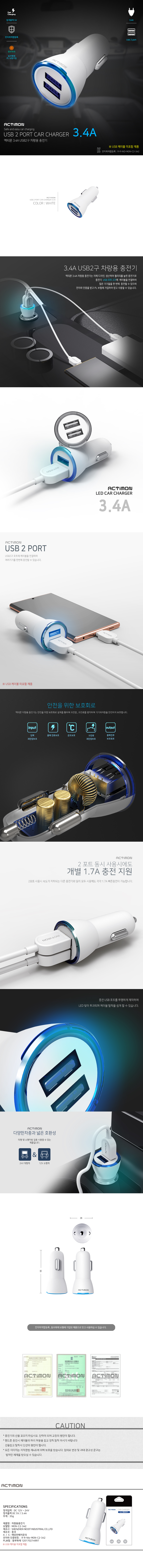 [¾×Ƽ¸ó] 2Æ÷Æ® Â÷·®¿ë ÃæÀüÇìµå - 3.4A (ÄÉÀÌºí ¹ÌÆ÷ÇÔ)